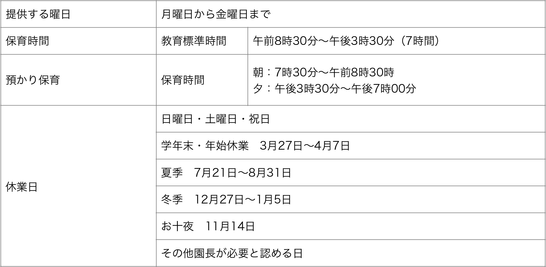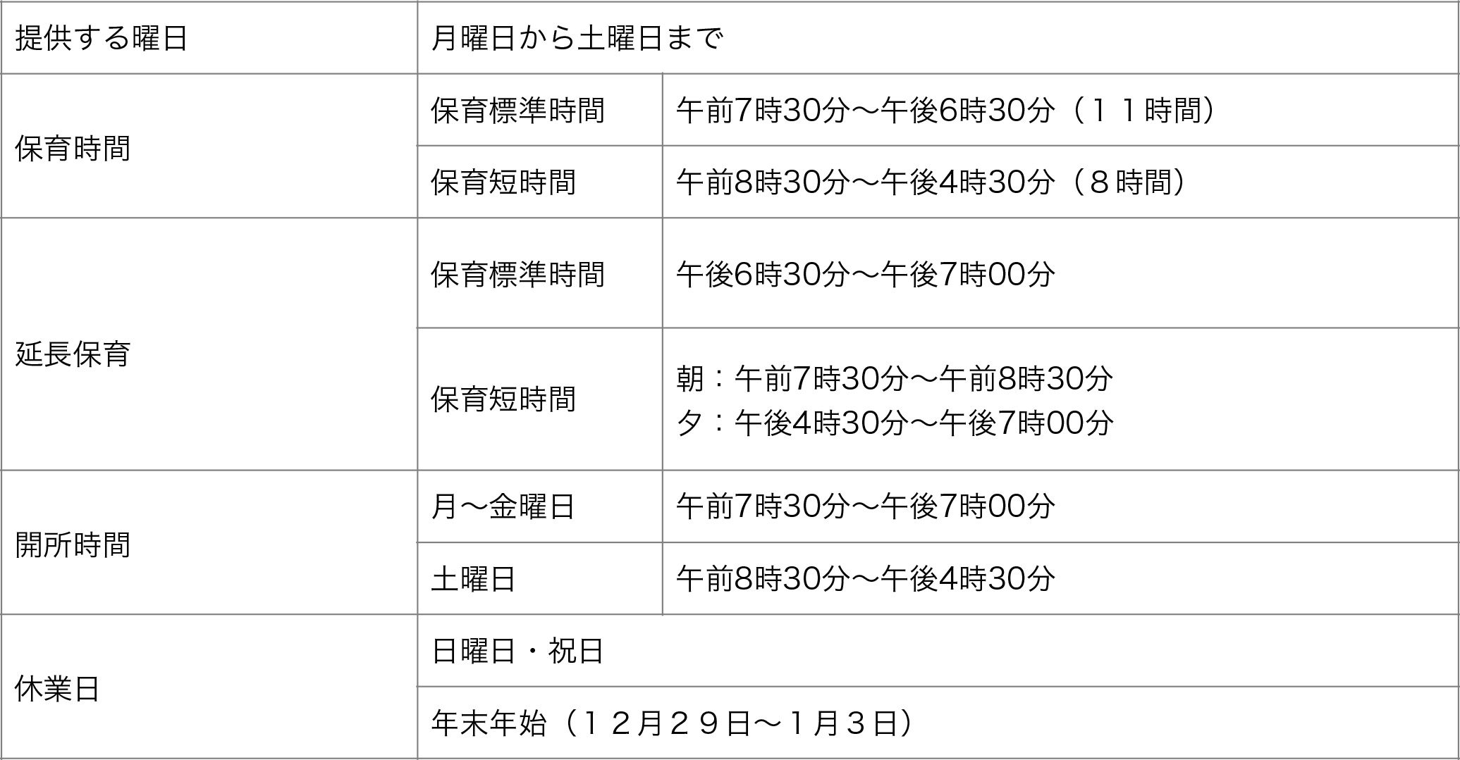 (6)利用定員ごとの提供する日及び時間並びに提供を行わない日